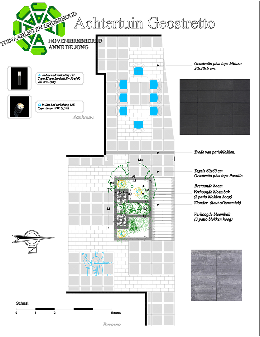 Het tuinontwerp wordt op een professionele manier en op schaal aangeboden voorzien van korte toelichting. Tevens hebben wij alle werkzaamheden en benodigde materialen berekend en een exacte kostenberekening gemaakt, wat in een productomschrijvende offerte is opgesteld. U kunt nu precies zien wat er allemaal gaat gebeuren en wat de kosten zijn. Koopt u het tuinontwerp om er zelf mee aan de slag te gaan, dan kunnen we er een werkplan bij leveren op regiebasis.